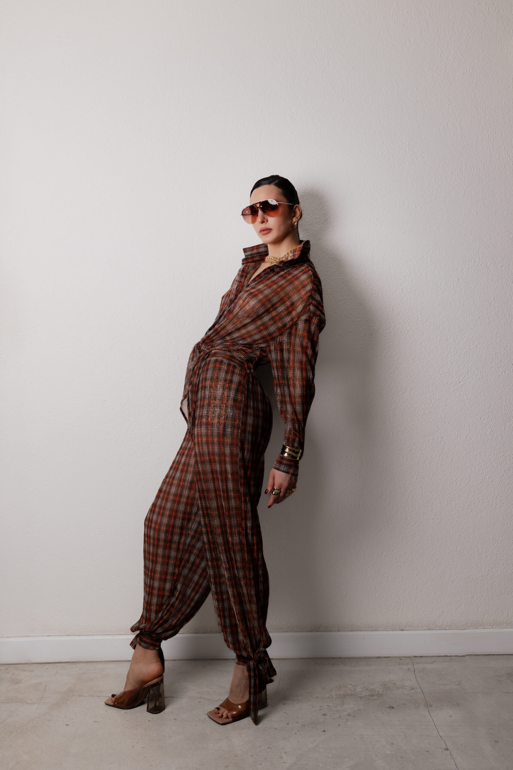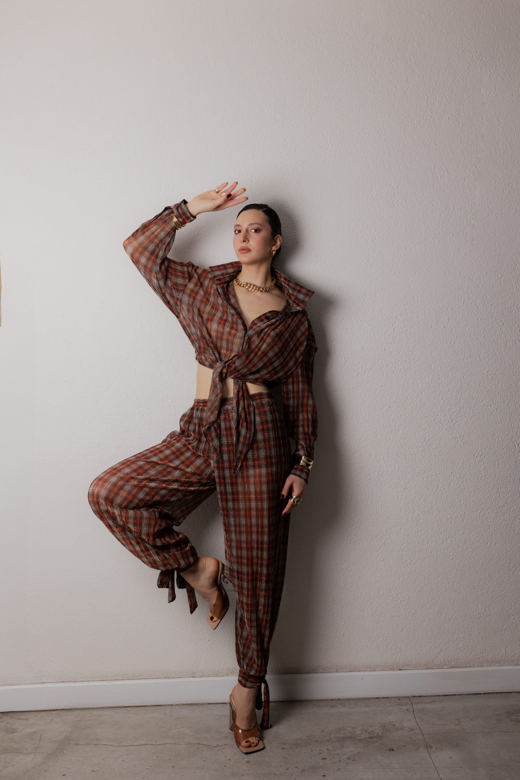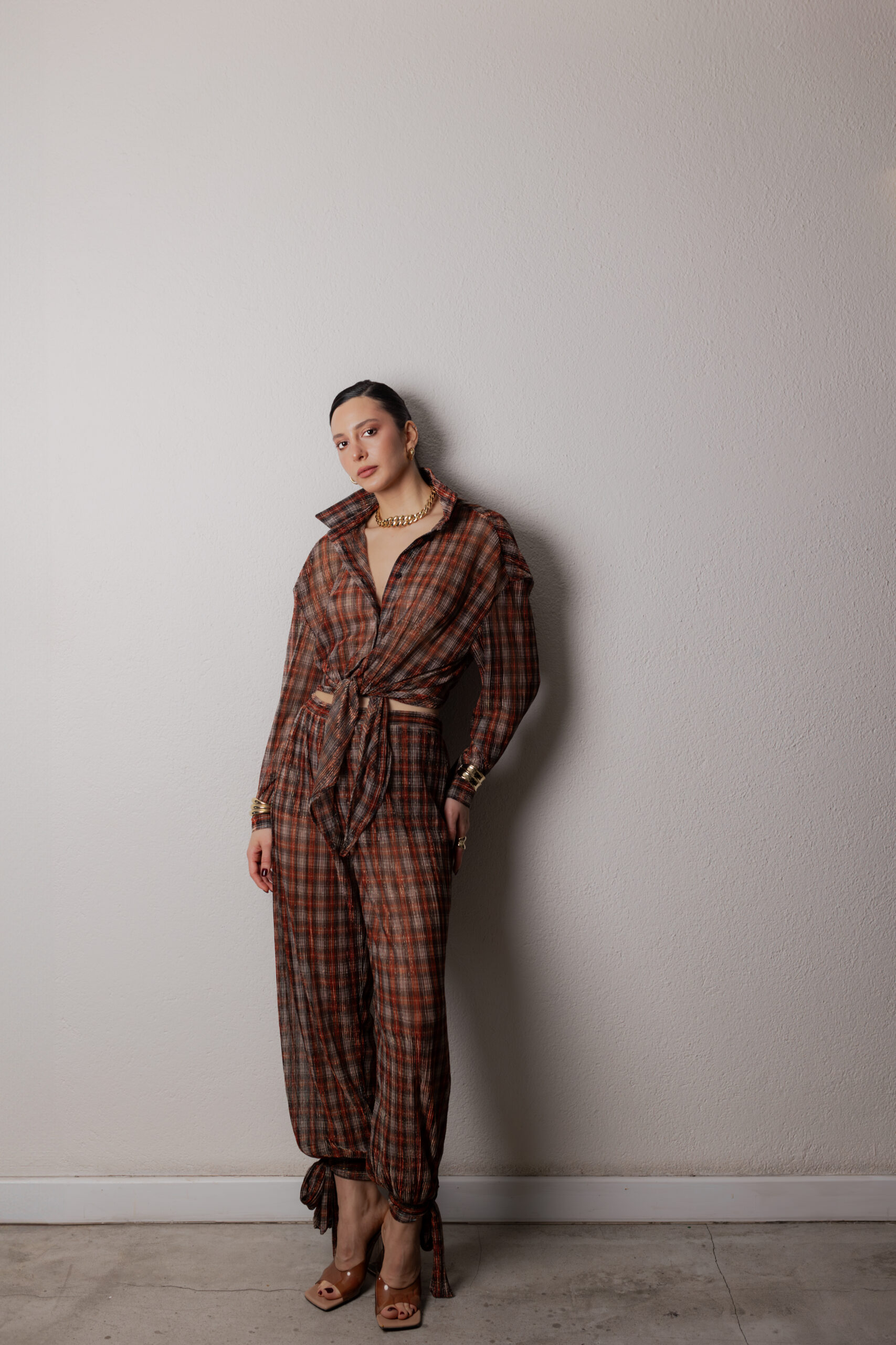 Ember Pant, rahat kesimi ve bilekte bağlama detayıyla modern ve güçlü bir duruş sunar.