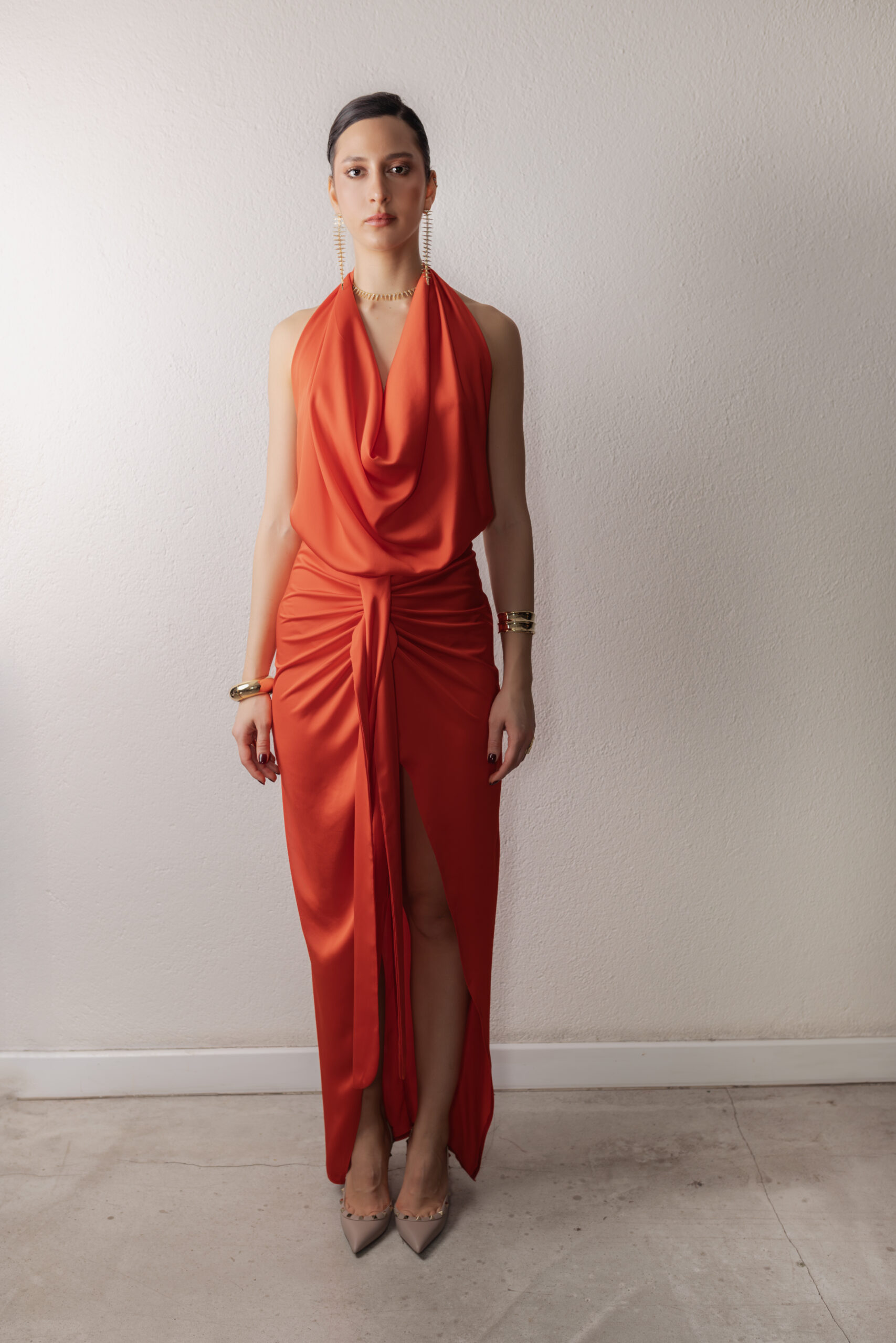 Flame Dress, akışkan formu ve cesur detaylarıyla feminen gücü öne çıkaran özel bir tasarımdır.